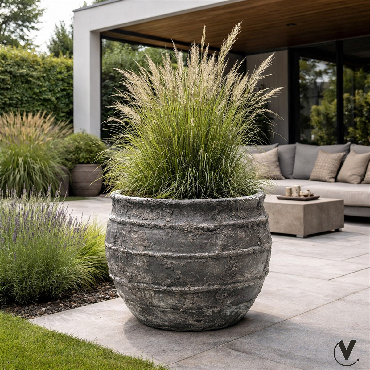 Handgemaakt van geharde klei en op hoge temperaturen gebakken waardoor het een steenachtige structuur krijgt en zeer sterk en duurzaam is. Elk exemplaar is uniek van kleur.- Geschikt voor binnen en buiten- Binnenmaat: Ø80cm- Diepte binnenpot: 78cm