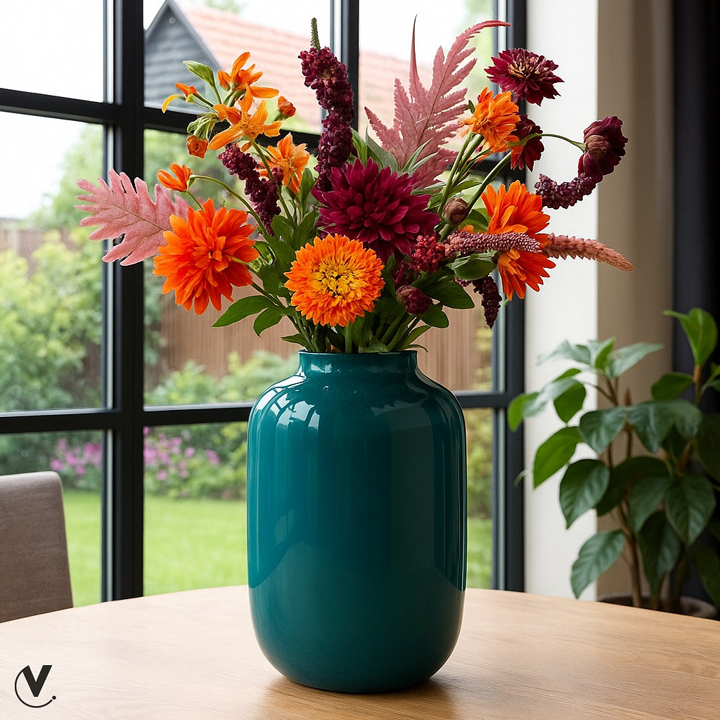 Voor de lefhebbers onder ons: dit is onze bekende vaas Artic van Vase The World in een opvallende Petrol kleur. Deze vaas laat elk boeket bloemen opvallen en er fantastisch uitzien, je kunt er namelijk niet om heen!Maak de vaas schoon met een droog en zacht doekje. Indien nodig, kun je een beetje water toevoegen en voorzichtig poetsen, zonder te hard te wrijven. Droog de vaas daarna goed af. De vazen zijn niet geschikt voor de vaatwasser.